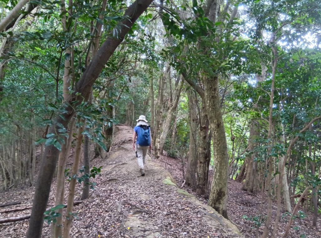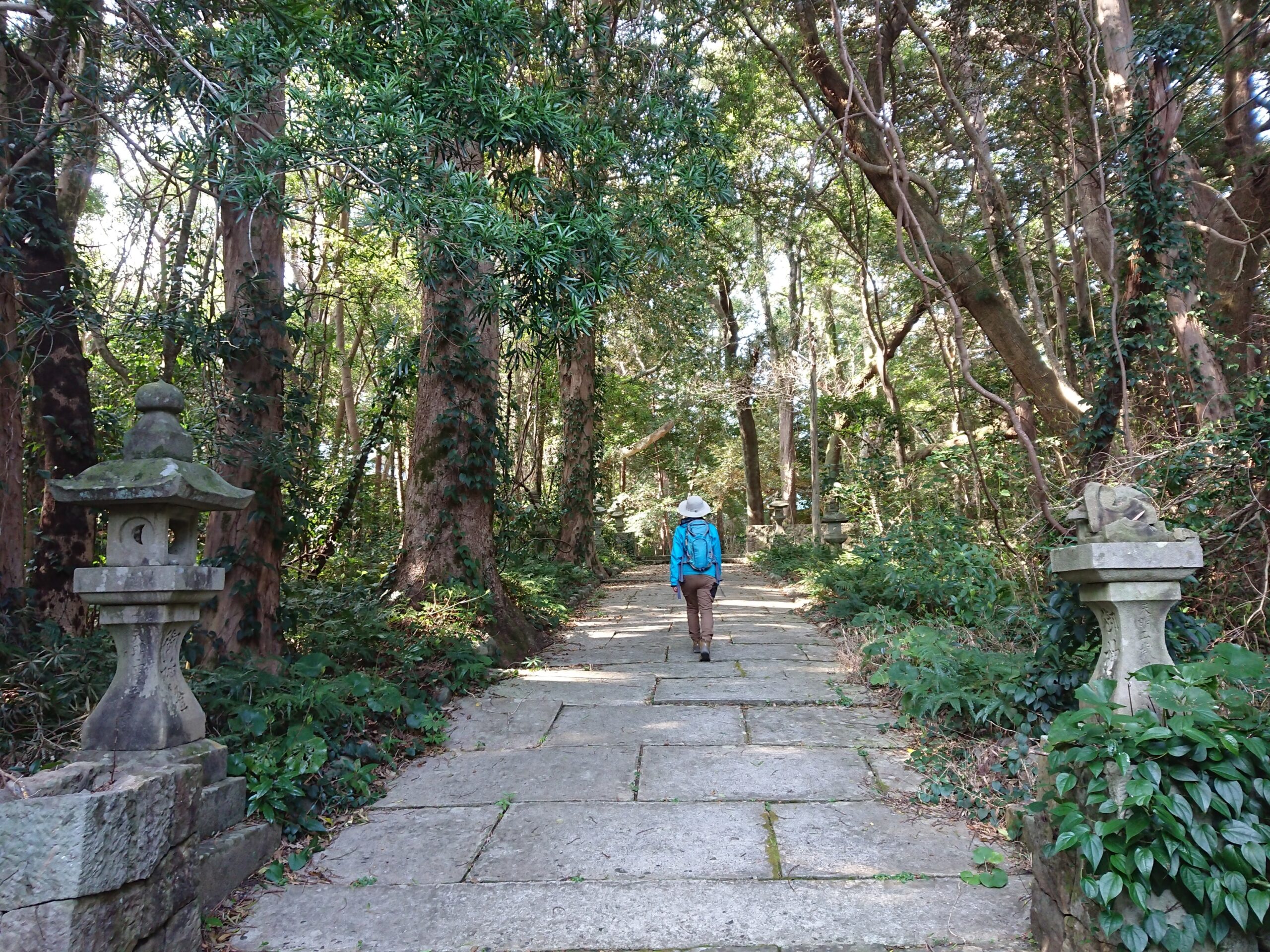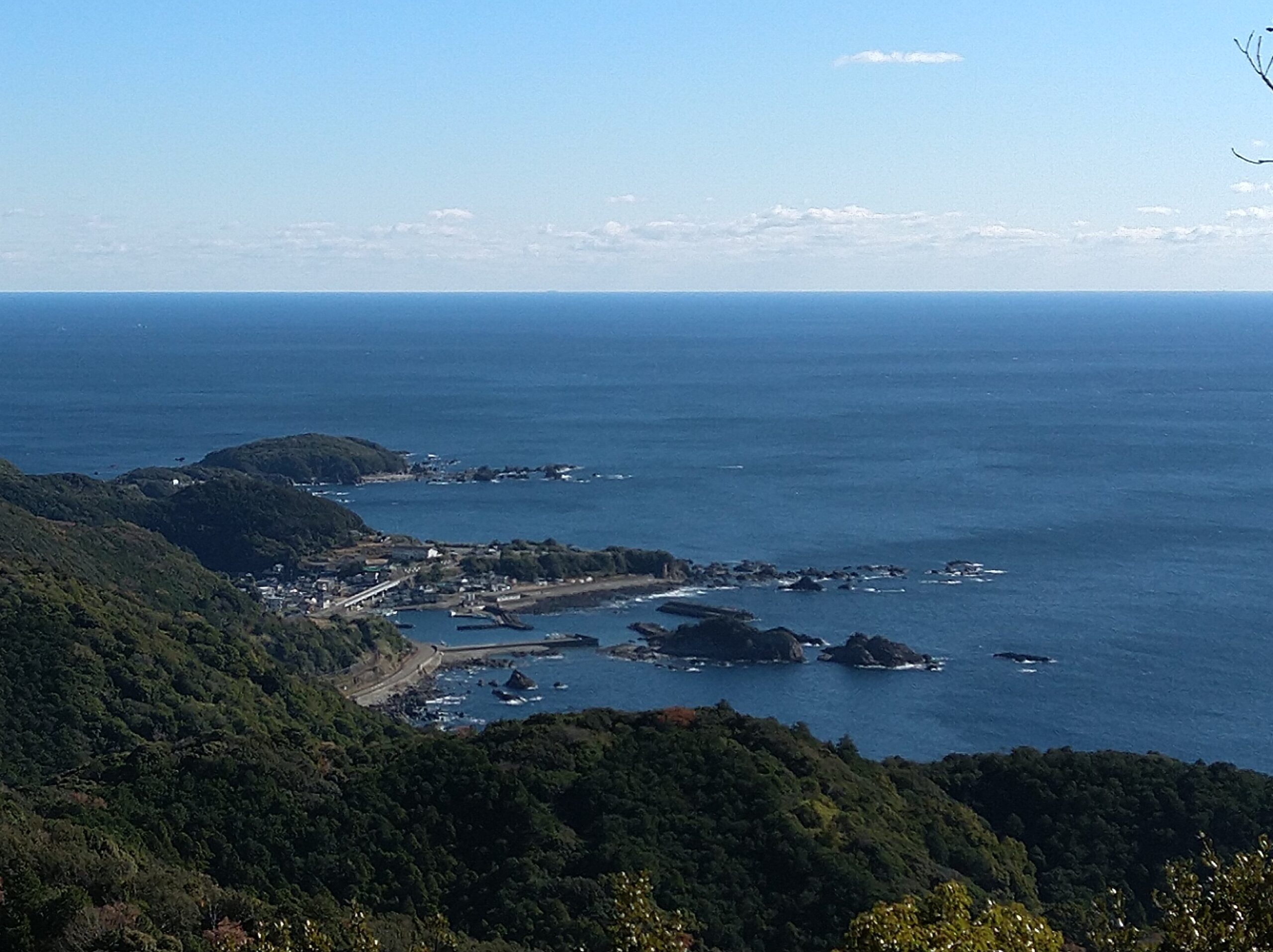 尾根道からは、眼下に見老津(みろづ)や江住(えすみ)の町並みが広がり、落ち葉を踏みしめながら歩く時間は、中辺路とはまた違った大辺路ならではの風景と雰囲気を味わわせてくれます。