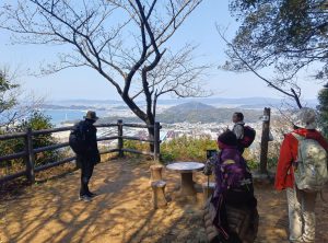 やや厳しい上り坂を超えた先の「御所の芝」からは、海南の街並みと海を一望する絶景が広がります。